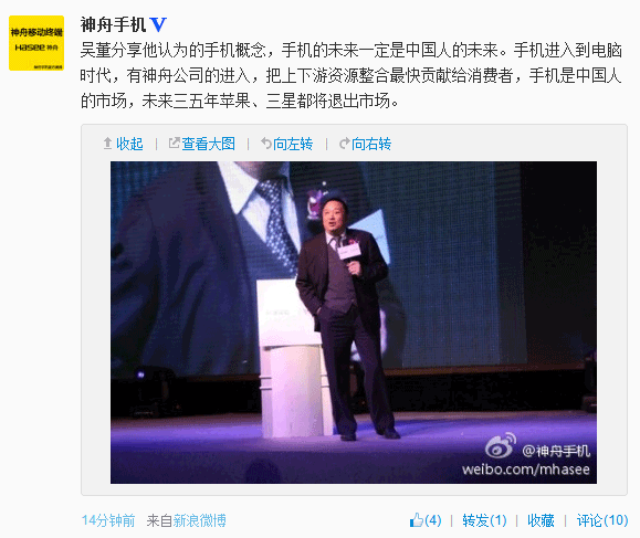神舟董事長吳海軍更是放出豪言壯語,稱神舟進入手機市場之后,未來三五年內蘋果和三星將被打敗并將退出中國市場。