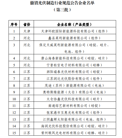 確定符合《光伏制造行業規范條件》企業名單(第八批)、撤銷光伏制造行業規范公告企業名單(第三批),現予以公告。
