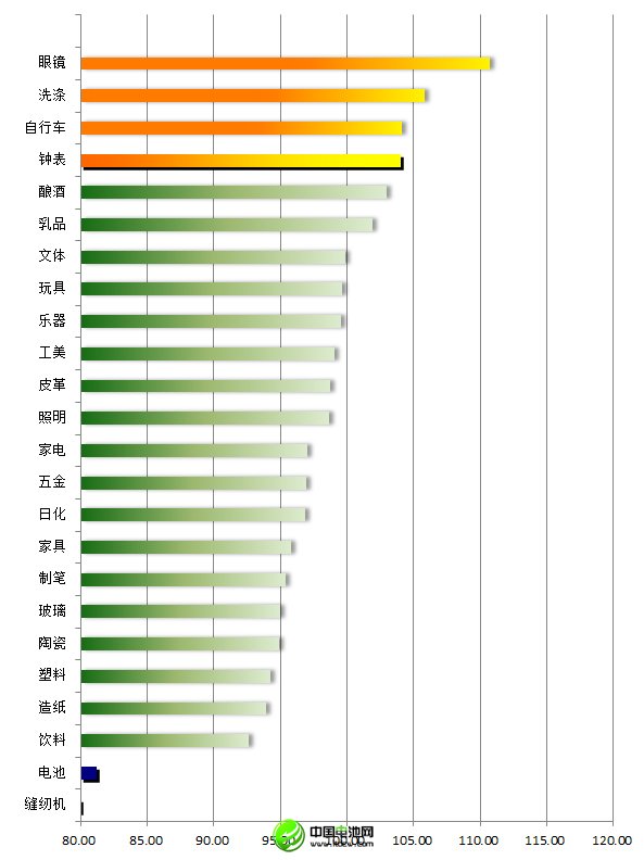 從分行業運行指數來看,在重點監測的24個行業中,眼鏡、洗滌、自行車、鐘表行業處于趨熱區間,電池行業處于趨冷區間,縫制機械行業處于過冷區間。