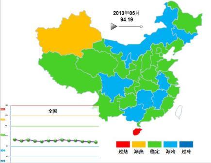 2013年5月,中國輕工業信息中心對全國輕工行業24個行業進行監測,1個行業進入趨冷區間,2個行業進入過冷區間,整體行業景氣情況如下: