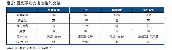 彼時的中國動力電池技術是以比亞迪等為代表的磷酸鐵鋰技術。顧名思義,磷酸鐵鋰電池就是以磷酸鐵鋰作為正極材料的鋰離子電池。其優勢在于安全性更高,使用壽命長,成本低廉。