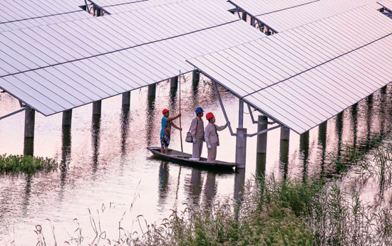 7月29日,位于江蘇泰州的全國最大水上光伏發(fā)電項目總發(fā)電量已經(jīng)突破十億度 CFP / 供圖