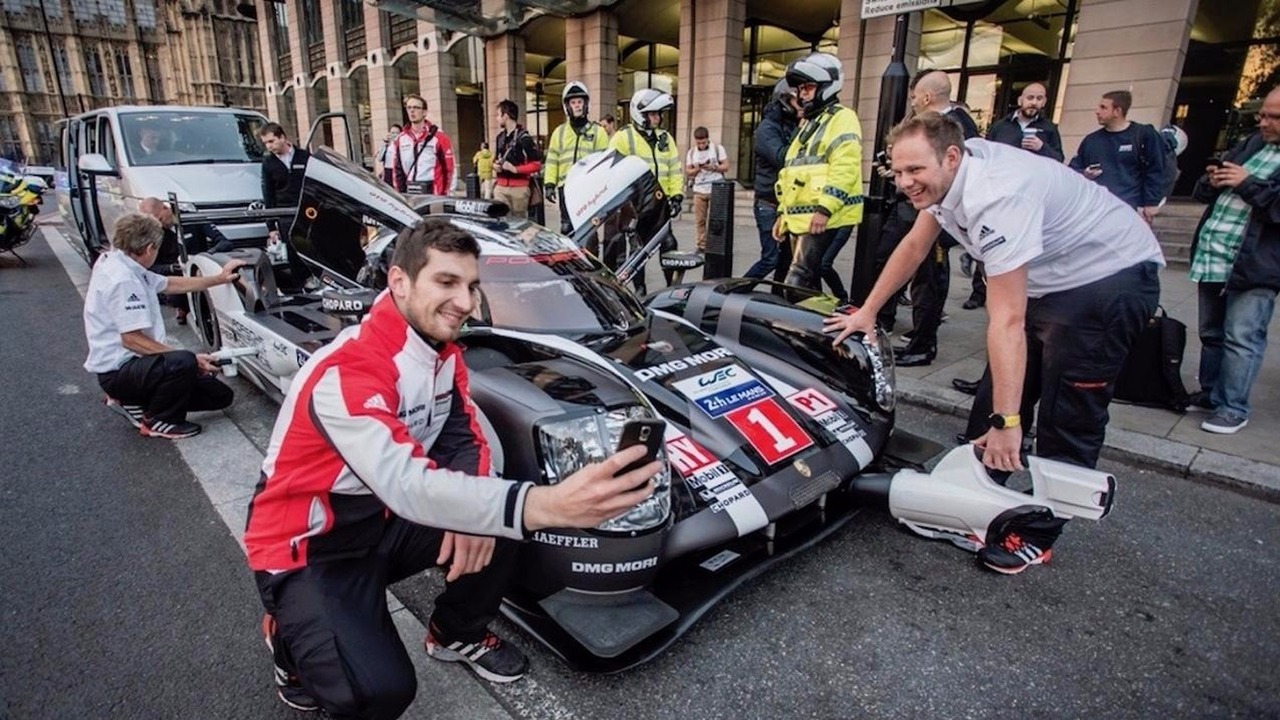 保時捷Panamera 4 E-Hybrid插電式混動轎車在倫敦街頭進行了華麗首秀,之前在法國勒芒國際汽聯世界耐力錦標賽中奪冠的保時捷919 Hybrid為其開道。...
