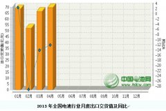 據中國輕工業預測預警系統顯示:2013年1月-4月,全國電池行業規模以上企業累計完成出口交貨值同比增長-11.48%。其中:4月份完成出口交貨值同比增長-10.69%。...