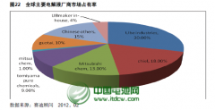 據(jù)上市公司財務報表顯示:2012年上半年深圳新宙邦(30037.SZ)鋰離子電池電解液收入達1.16億元,同比增長74.26%,利潤增長超過100%;東莞杉杉電解液營業(yè)收入達到0.95億元,同比增長26%,利潤增長超...