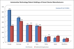 事實上,單谷歌一家公司在美國已經獲得了310項與智能汽車設備、導航和路線圖指示相關的專利,蘋果也手握35項類似專利,而其他5家智能手機制造商共計擁有617項與汽車應用相關的專利。...
