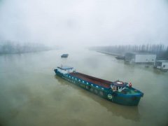 1月18日,純電動貨運船在河道內運行。該電動貨運船一次充電可以行駛200至300公里,充電時間大約6至8小時。...