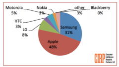 2013年第四季度,得益于假日購物季iPhone的強勁銷量,蘋果公司超越三星重新領跑美國智能手機市場,份額達48%,而三星較第三季度則出現下滑,份額為31%。...