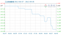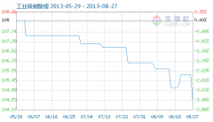 8月27日工業(yè)級(jí)碳酸鋰商品指數(shù)為104.46,較昨日下降了1.27點(diǎn),較周期內(nèi)最高點(diǎn)112.10點(diǎn)(2012-11-04)下降了6.82%,較2012年01月05日最低點(diǎn)98.94點(diǎn)上漲了5.58%。(注:周期指2011-09-01至今) 工業(yè)級(jí)碳酸鋰商品...