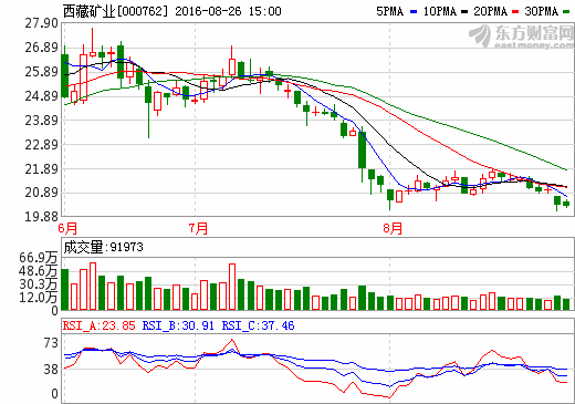 西藏礦業:2016上半年營收2.75億元 同比下降34.28%