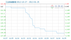 1月25日工業級碳酸鋰商品指數為108.28,與昨日持平,較周期內最高點112.10點(2012-11-04)下降了3.41%,較2012年01月05日最低點98.94點上漲了9.44%。 (注:周期指2011-09-01至今) 工業級碳酸鋰商品指數自2012-11-4起,82天陸續下降了3.408%。...